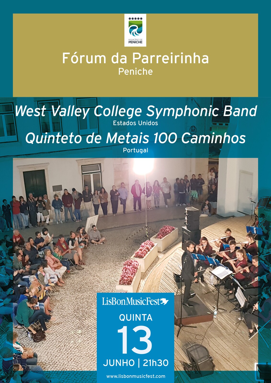 Adicionar a calendário2024-06-13 21:30:002024-06-13 21:30:00Europe/LisbonLisbon Music Fest | West Valley College Symphonic Band e Quinteto de Metais 100 CaminhosFórum da Parreirinha, Peniche