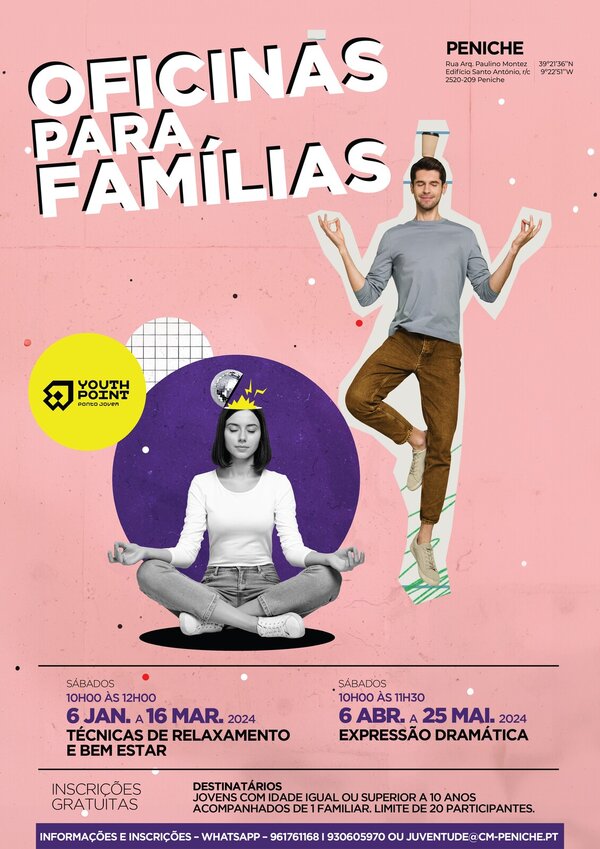 06 Janeiro a 25 Maio 2024Oficinas para Famílias | Oficina de Técnicas de Relaxamento e Bem Estar e Oficina de Expressão Dramática