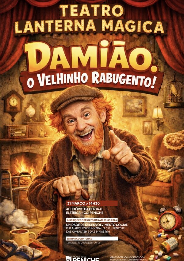 Datas31 Março 2026TítuloTeatro Lanterna Mágica "Damião. O Velhinho Rabugento!"