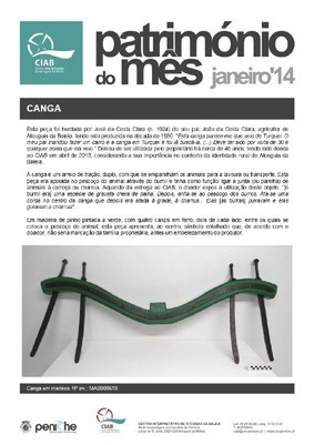 Em janeiro de 2014, destaca-se uma Canga em madeira como Património do Mês, peça doada ao Centro Interpretativo de Atouguia da Baleia (CIAB) pela sua importância no contexto da identidade rural local.