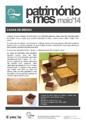 Um conjunto de cinco caixas em madeira usadas como medida-padrão para volumes secos é o Património do Mês de maio.