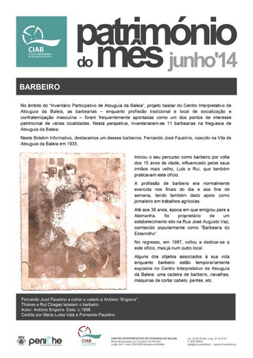 Enquadrado na iniciativa “Património do Mês” de junho, estão expostas, no Centro Interpretativo de Atouguia da Baleia, cadeira e outras peças associadas a um dos barbeiros da Vila de Atouguia da Baleia: Fernando José Faustino (n. 1935).