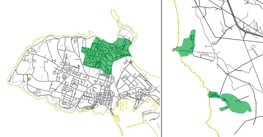 Área geográfica: Pingo Doce, Porto de Pesca, Avenida do Mar, Marina, Zona Antiga (Rua Primeiro de Dezembro, Rua dos Hermínios, Rua dos Bombeiros Voluntários, Rua Marquês de Pombal), Bairro do Visconde, Bairro de Santana, Remédios e Escola Superior de Turismo e Tecnologia do Mar (ESTM)