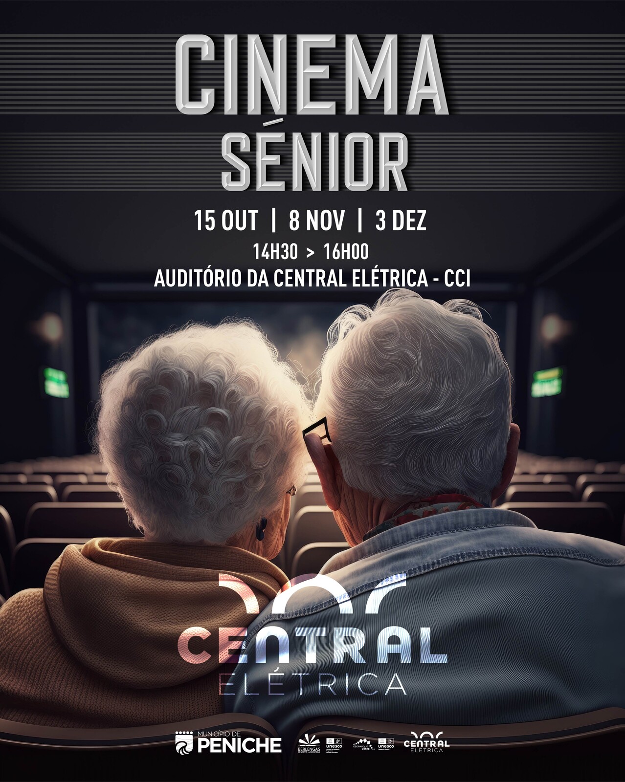 Adicionar a calendário2024-10-15 14:30:002024-12-03 16:00:00Europe/LisbonCinema Sénior no Auditório da Central Elétrica - CCIAuditório da Central Elétrica - Centro Cívico Intergeracional de Peniche (CCI)